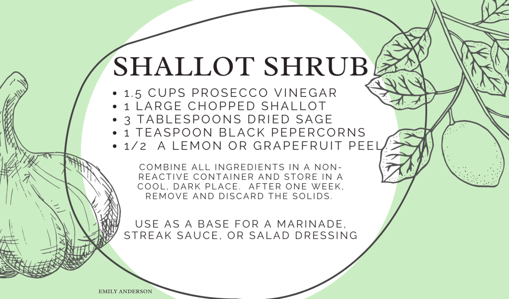 Shrub, or drinking vinegar, has been utilized as a health tonic and culinary ingredient for centuries. Today shrub is used in everything from craft cocktails to household cleaning supplies and spiritual tools.