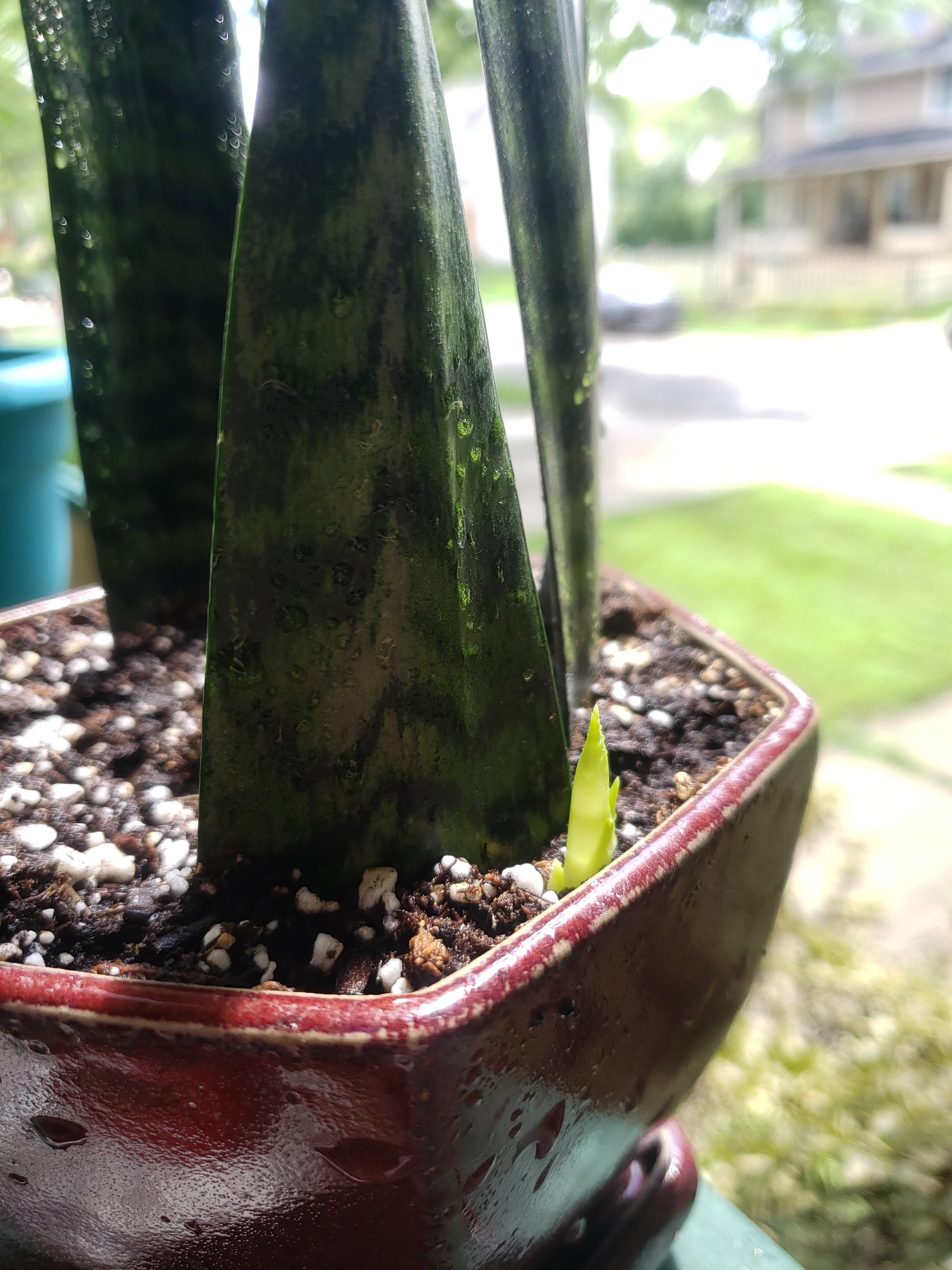 These plants are known for being low-light tolerant. As long as a few hours of light hits them daily they’ll live. However, if you want to see your Snake Plant grow you’ll have to give it a bit more sun. Medium, indirect light is best. Direct sunlight, especially in the summer, can burn the leaves of a Snake Plant that normally lives indoors.